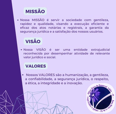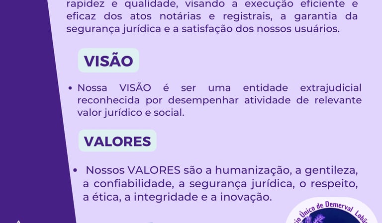 Somos o Ofício Único de Demerval Lobão e buscamos a melhoria contínua do sistema de gestão da qualidade nos métodos, processos e serviços, visando a excelência no atendimento, o cumprimento dos requisitos legais aplicáveis e a satisfação plena dos usuários.